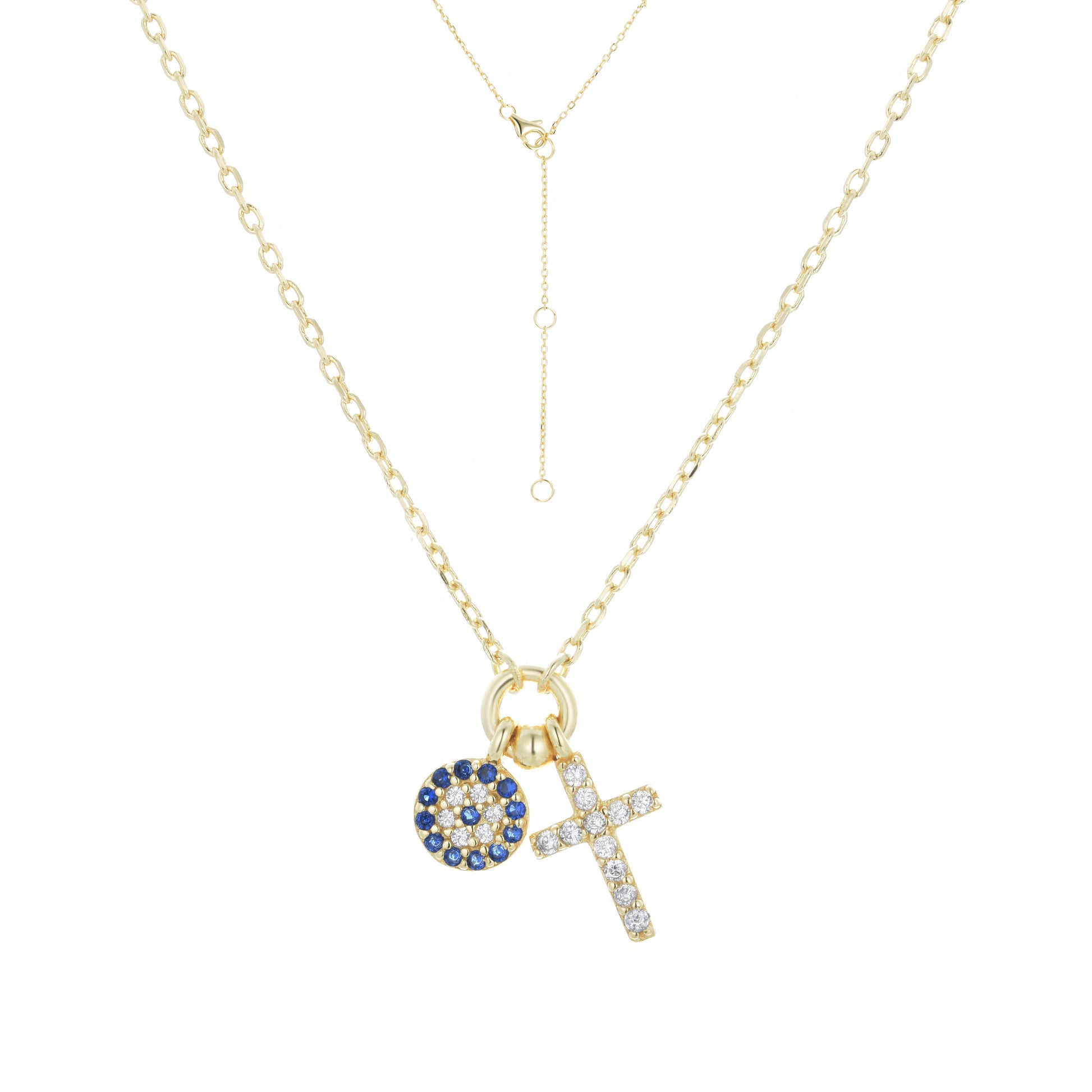ALEXIA EVIL EYE AND CROSS GOLD NECKLACE
