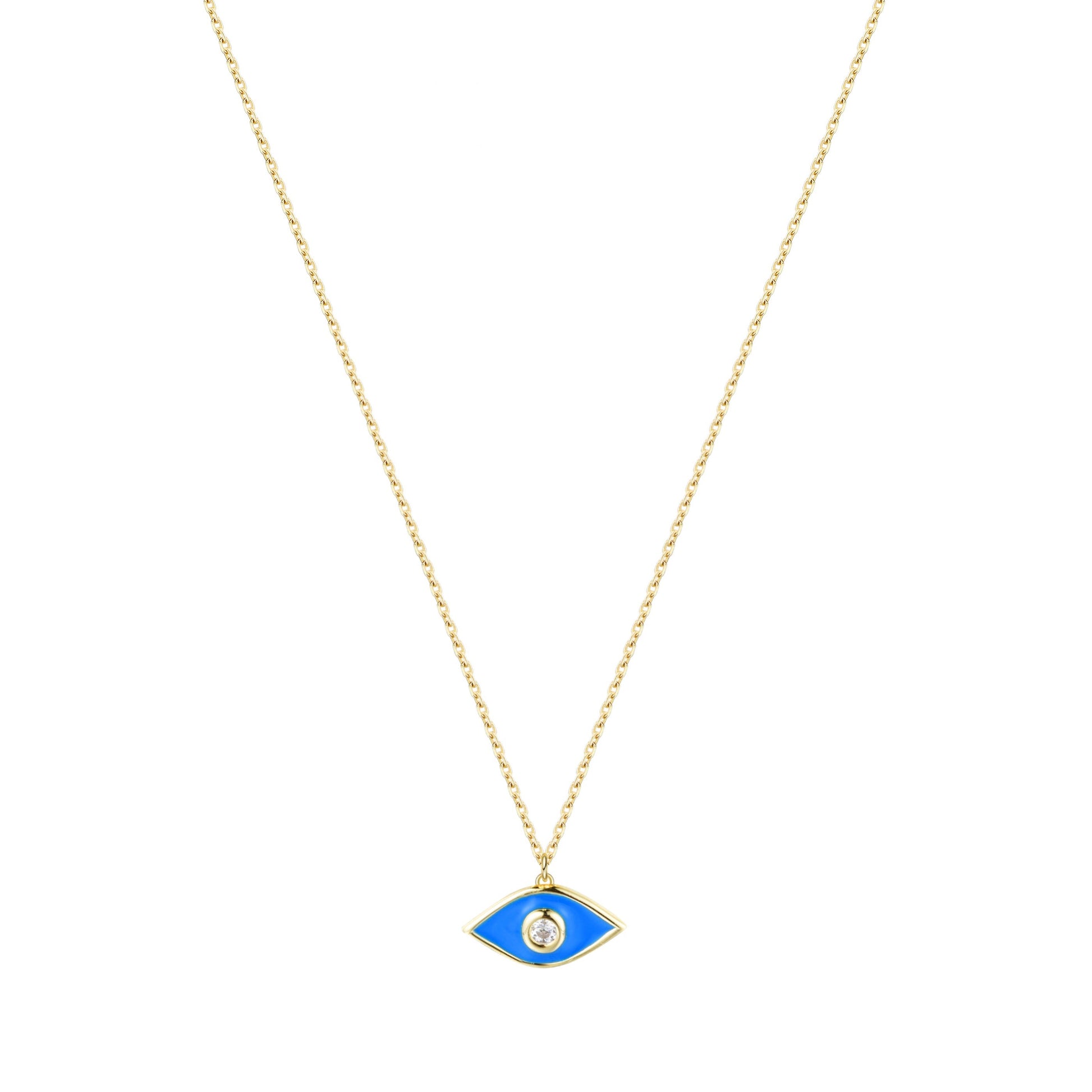 A unique evil eye necklace featuring exquisite central crystal stone. This piece can be worn as a symbol of protection and layered with our other delicate necklaces for an effortless stylish look.