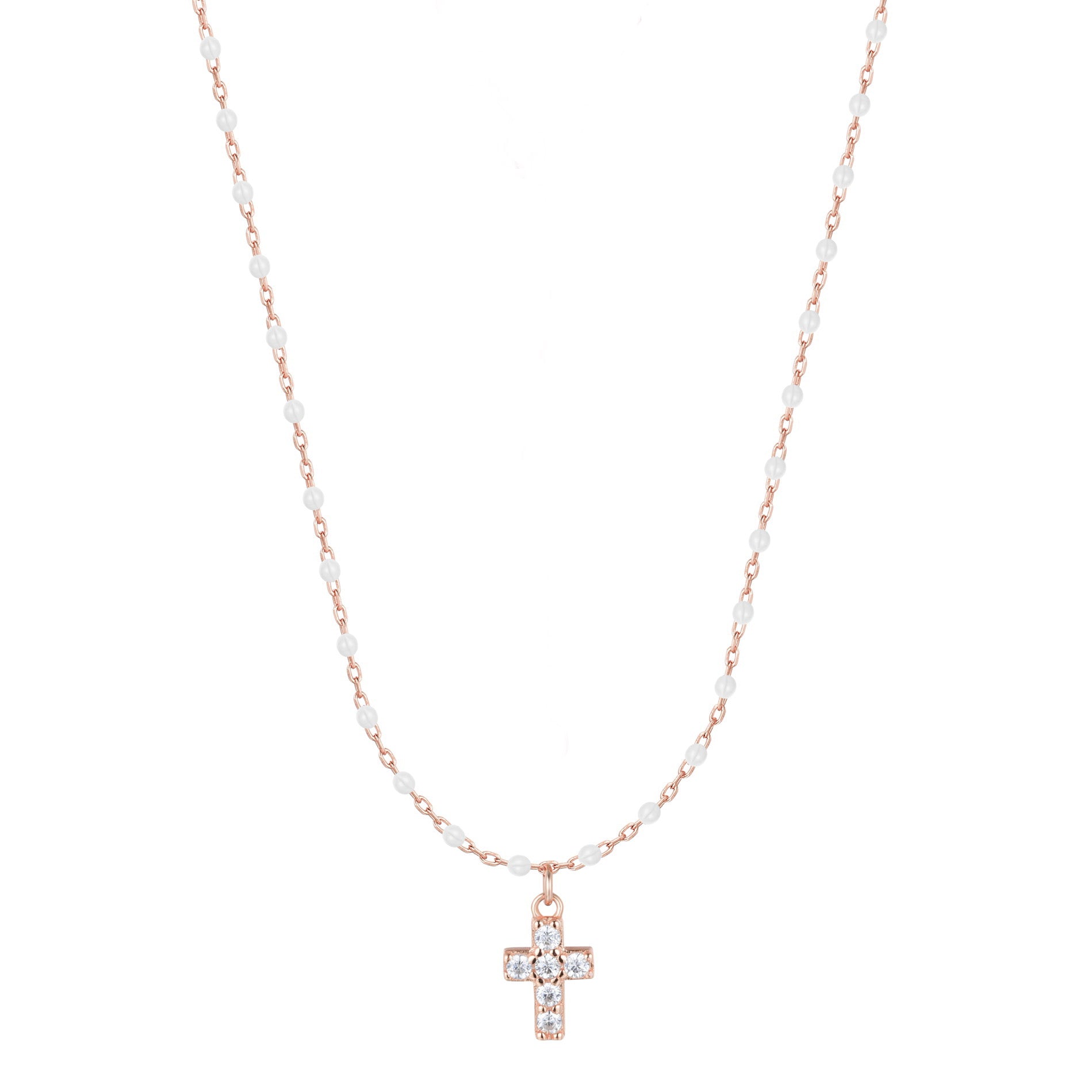 AMARI MINI CROSS WHITE BEADED ROSE GOLD NECKLACE