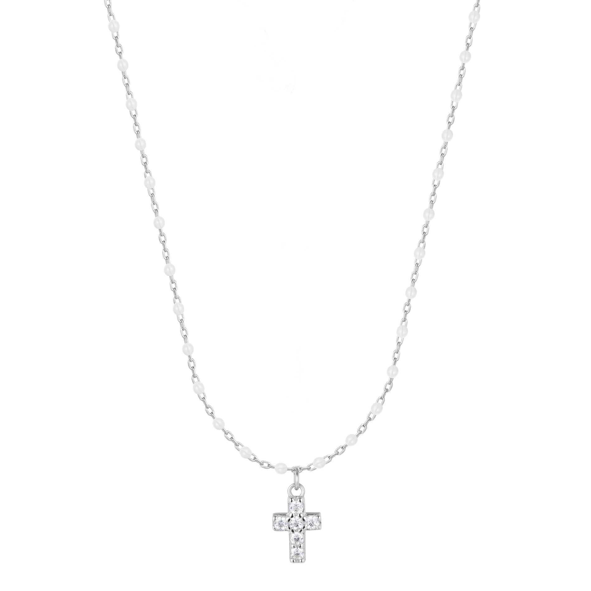 AMARI MINI CROSS WHITE BEADED SILVER NECKLACE