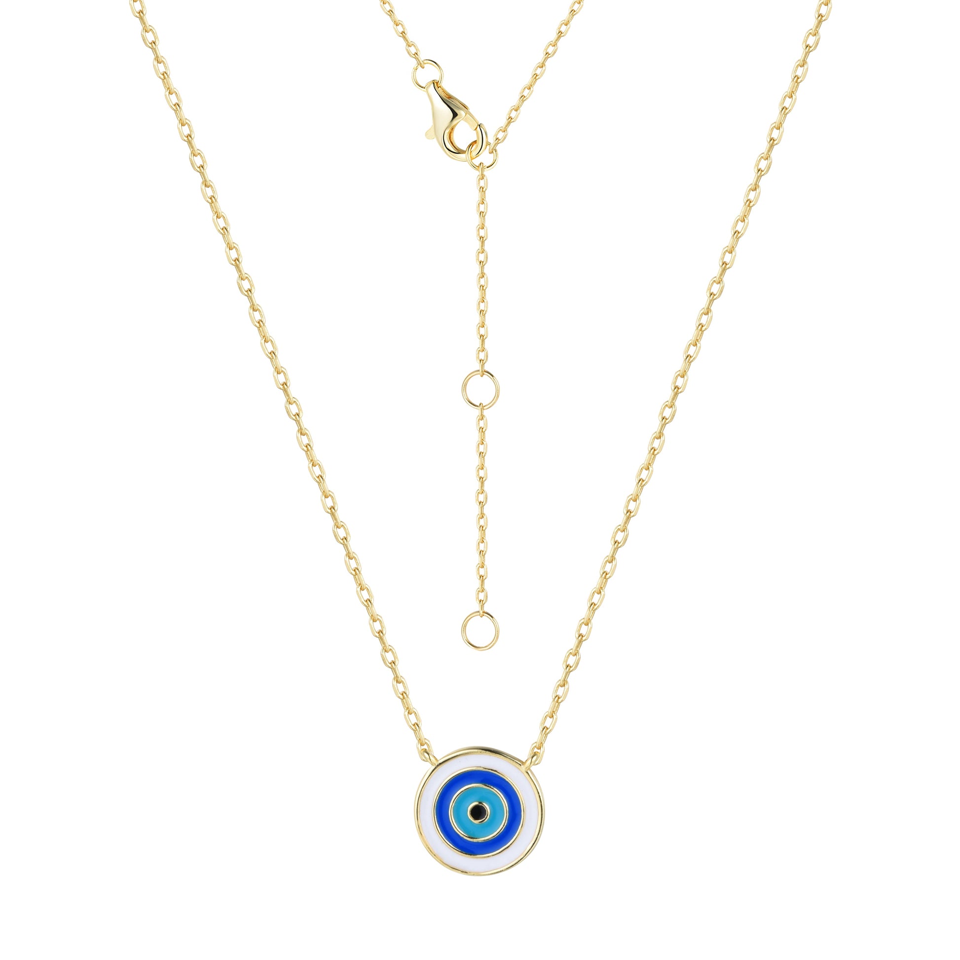 A unique evil eye necklace. This piece can be worn as a symbol of protection and layered with our other delicate necklaces for an effortless stylish look.