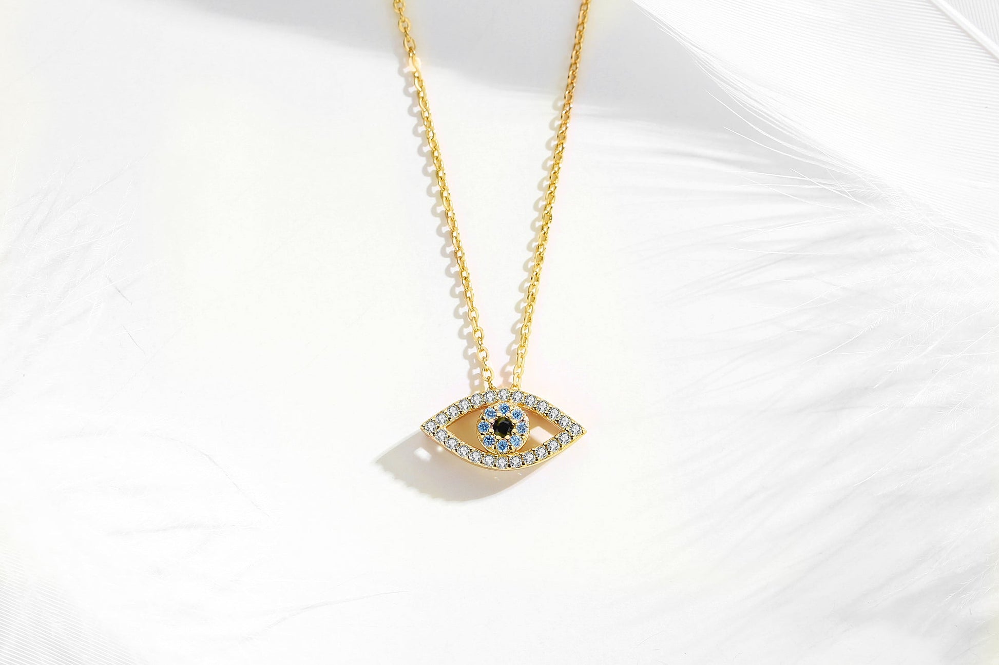 Gorgeous evil eye necklace with exquisite turquoise and crystal stones. This piece can be worn as a symbol of protection and layered with our other delicate necklaces for an effortless stylish look.