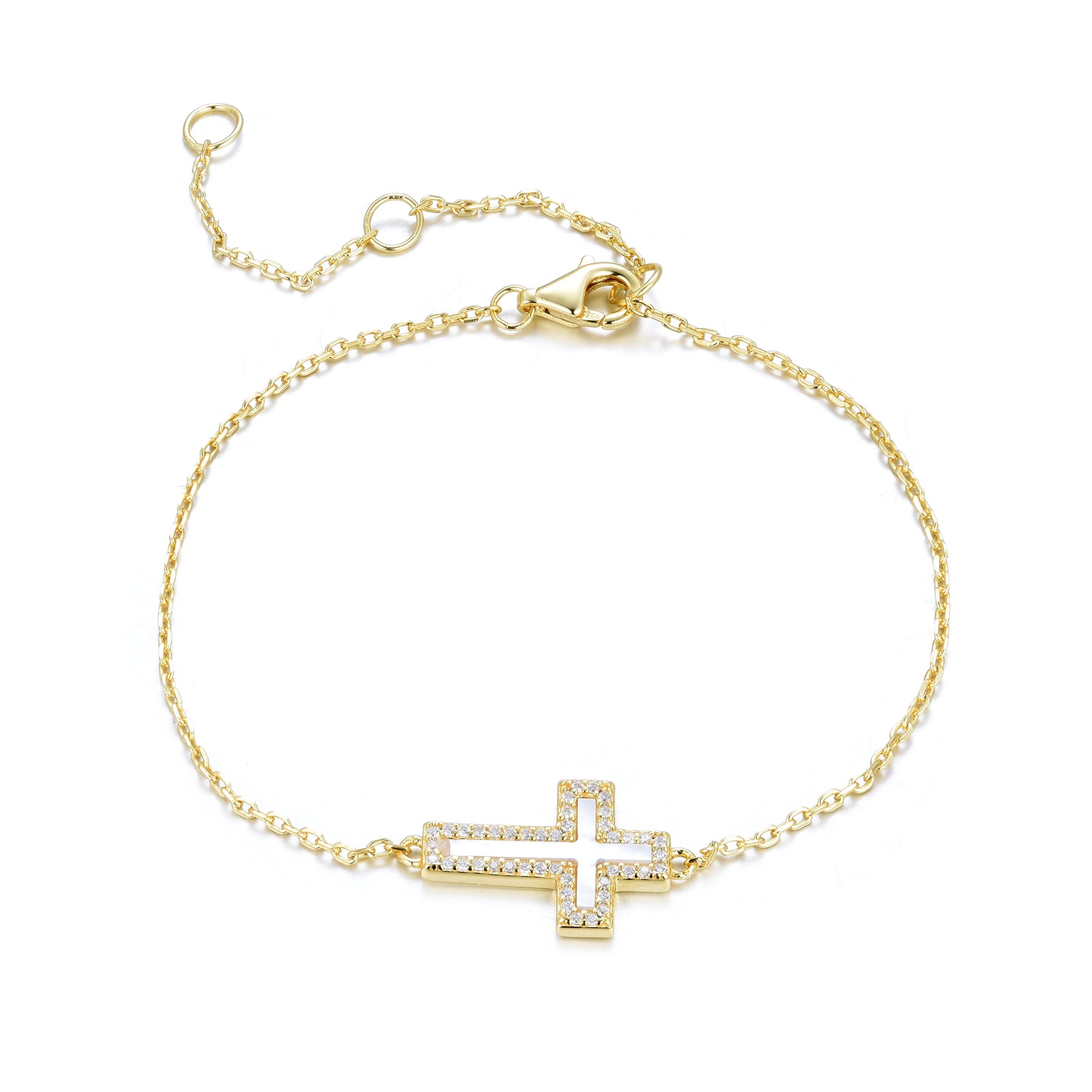 This gorgeous mother of pearl side cross bracelet encrusted with natural crystals is the perfect bracelet for everyday wear. The cross is a symbol of love, sacrifice and faith. This piece can be worn as a symbol of protection and layered with our other delicate necklaces for an effortless stylish look.