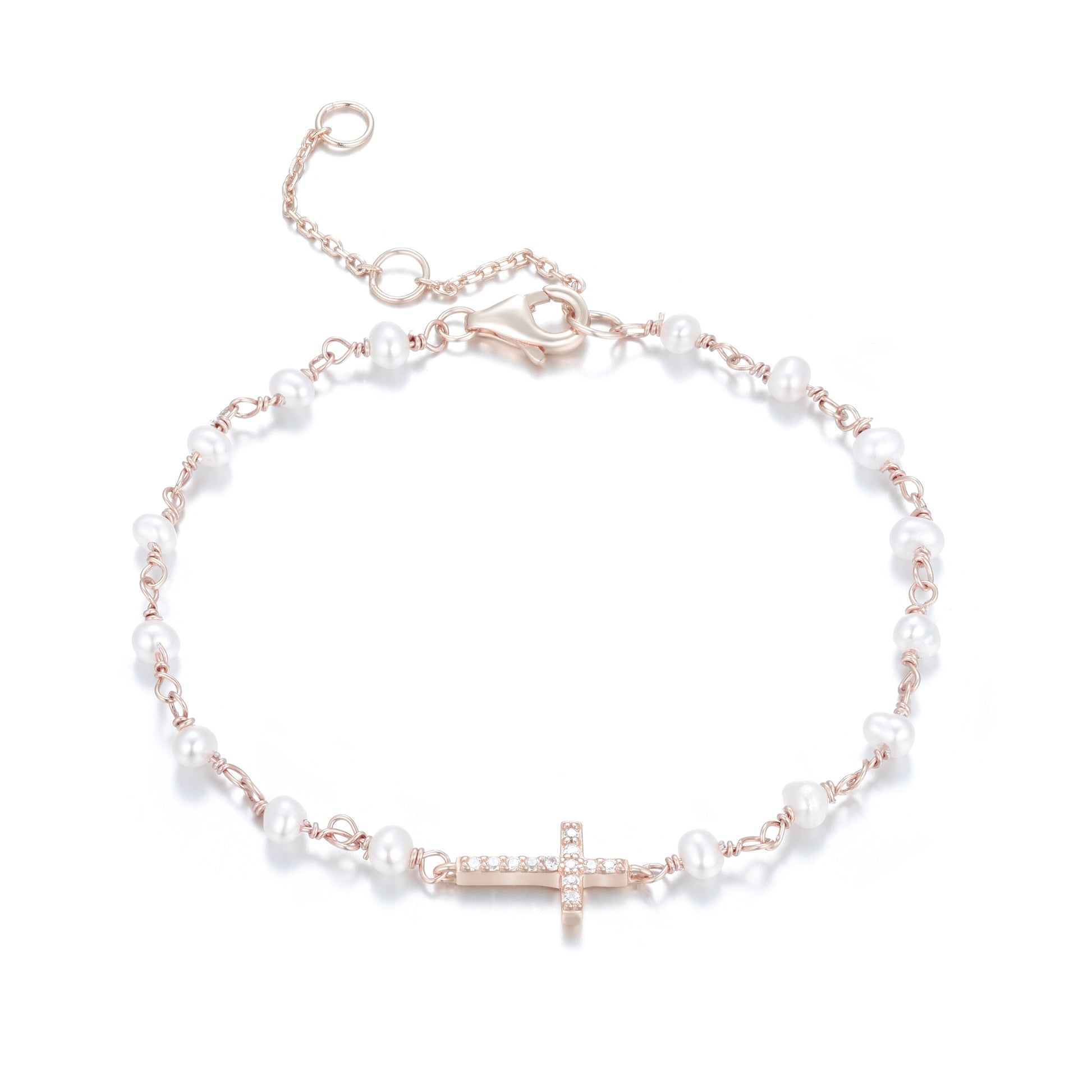 KATERINA CROSS PEARL BEADED ROSE GOLD BRACELET