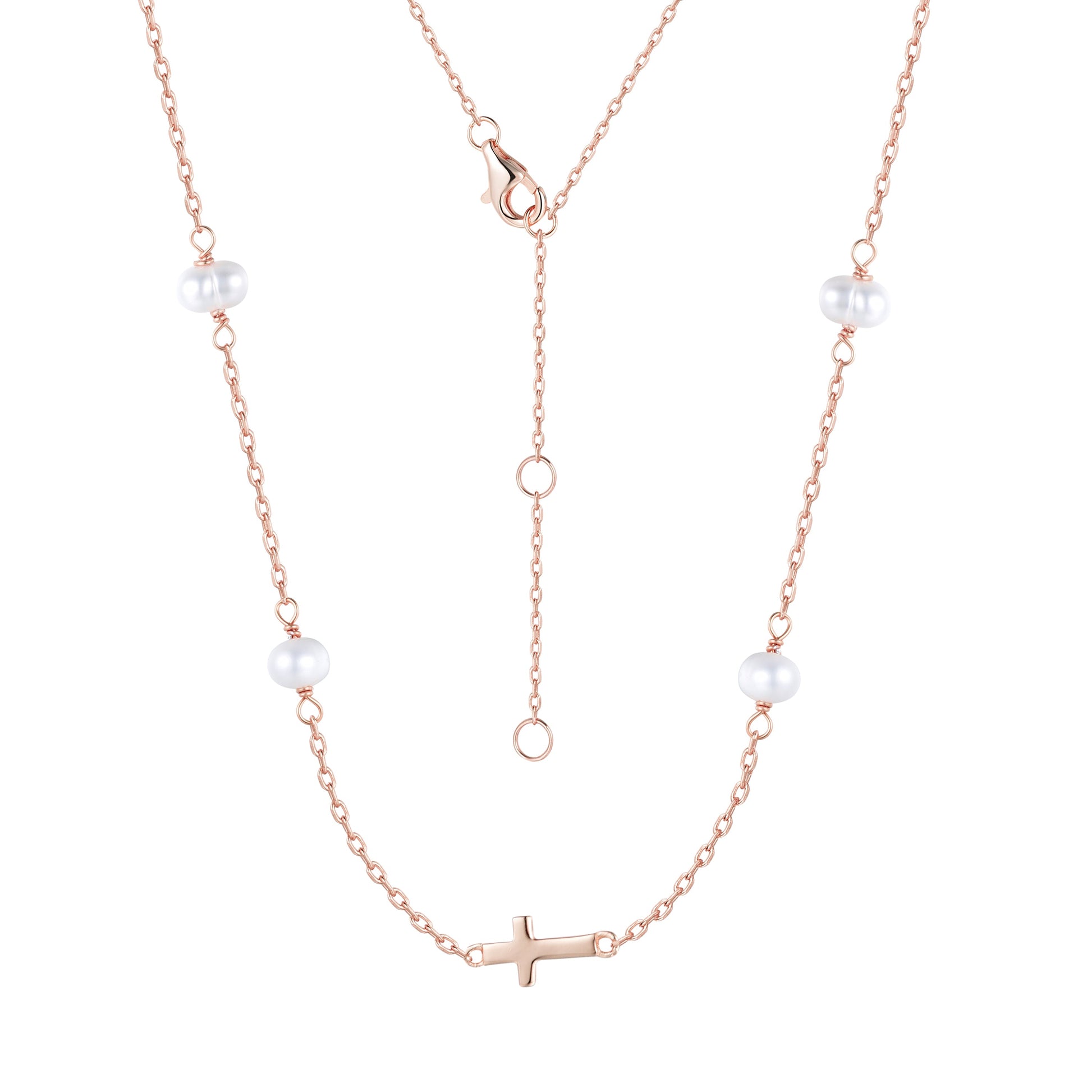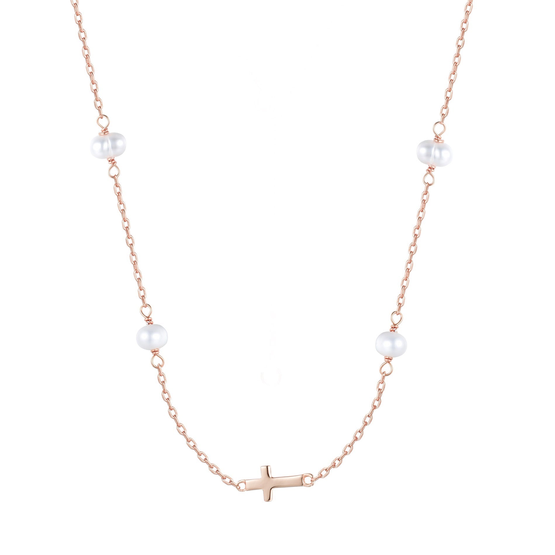 MIKALA CROSS PEARL BEADED ROSE GOLD NECKLACE