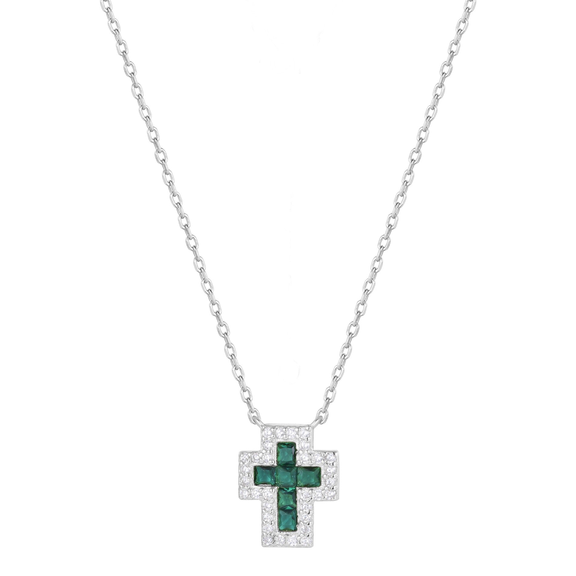 SARAI EMERALD CROSS SILVER NECKLACE