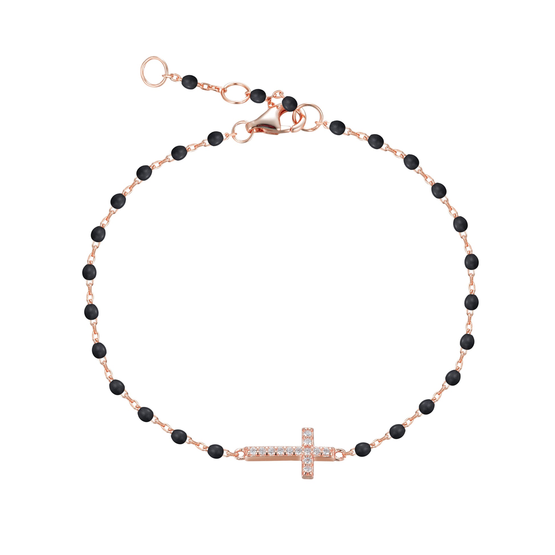 VANESSA CROSS BLACK BEADED ROSE GOLD BRACELET