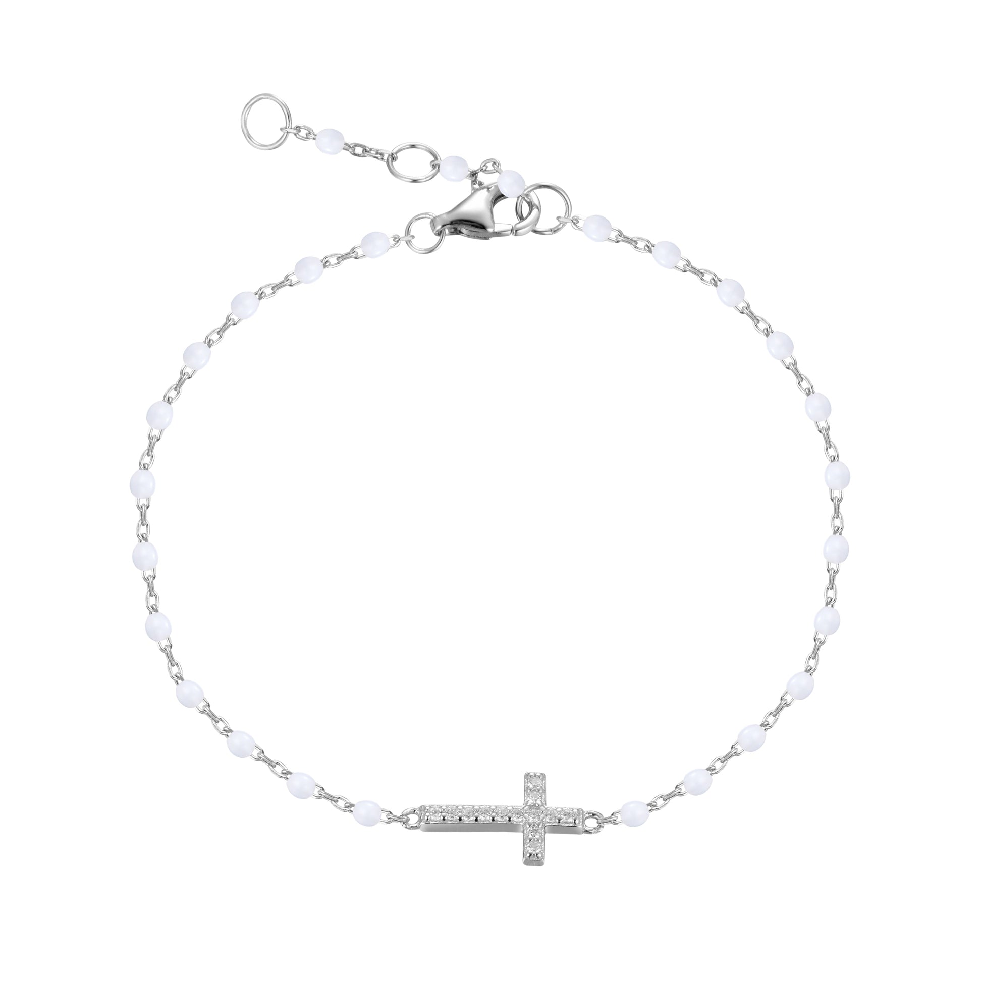 VANESSA CROSS WHITE BEADED SILVER BRACELET